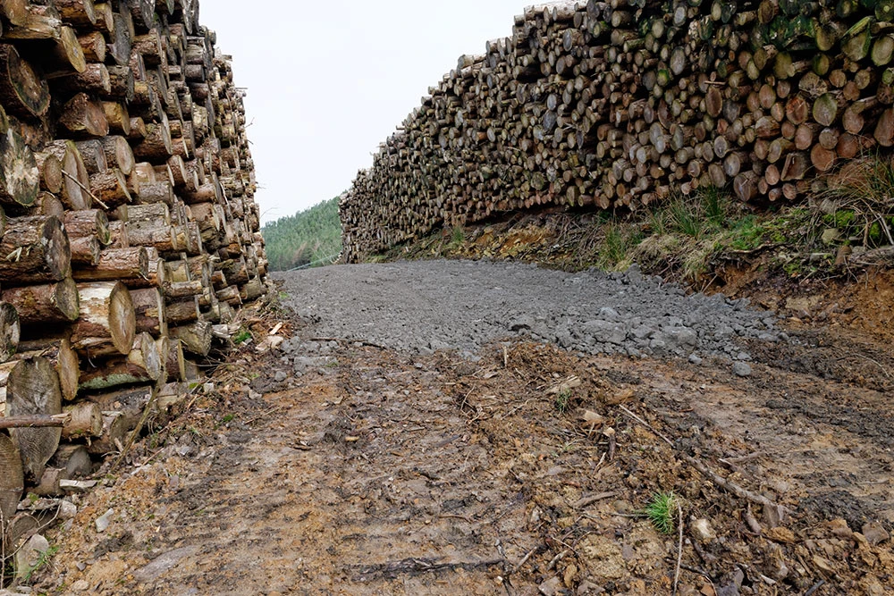 There is a dramatic change in the landscape taking place due to an outbreak of an airborne parasitic fungus, Phytophthora Ramorum (P. ramorum). Large areas of forestry is to be cleared in an attempt to combat the disease. A tree infected with P.ramorum loses all its lower branches and is dead within one growing season. The photographs below are part of a body of work that attempts to document the activities of the forestry commission and the effect on the landscape while new trees are planted.